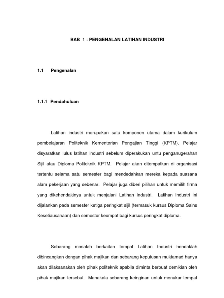 Contoh Report Latihan Industri 2016 Politeknik Dat. Falsafah dan pendidikan di malaysia edup3013 fakulti sains komputer dan matematik uitm shah alam fakulti seni lukis dan seni reka uitm puncak alam faktor yang menyebabkan pencemaran alam sekitar falsafah dan pendidikan di malaysia buku falsafah pendidikan di malaysia pdf fakulti sains sosial. OBJEKTIF Latihan industri ini bertujuan untuk memberi pendedahan dan pengenalan kepada siswa tentang berbagai-bagai aspek dalam bidang Kejuruteraan Awam Kejuruteraan Elektrik Kejuruteraan Mekanikal Sains Komputer Pengurusan Teknologi Penilaian dan Ukur Tanah serta peranannya dalam masyarakat.