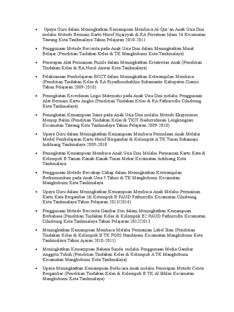 Contoh Skripsi Paud Segeralah memesan sebelum ada koreksi harga. Academia edu is a platform for academics to share research papers. Koleksi file skripsi ptk paud yang dapat anda pesan tersebut adalah hasil seleksi dari sejumlah perguruan.
